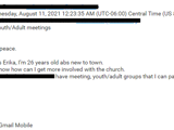 • Only reply with “publicly available” information. In other words, you can send links and information that are already published on the church website regarding meeting and service times. Do not supply any additional information via email if you do not know for certain who you are speaking with.